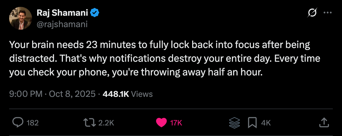 But I try to do one thing every day for the long term. And the result shows up. This very newsletter is read by 2k+ people (like you!), and my personal blog is read by thousands of readers every single week.